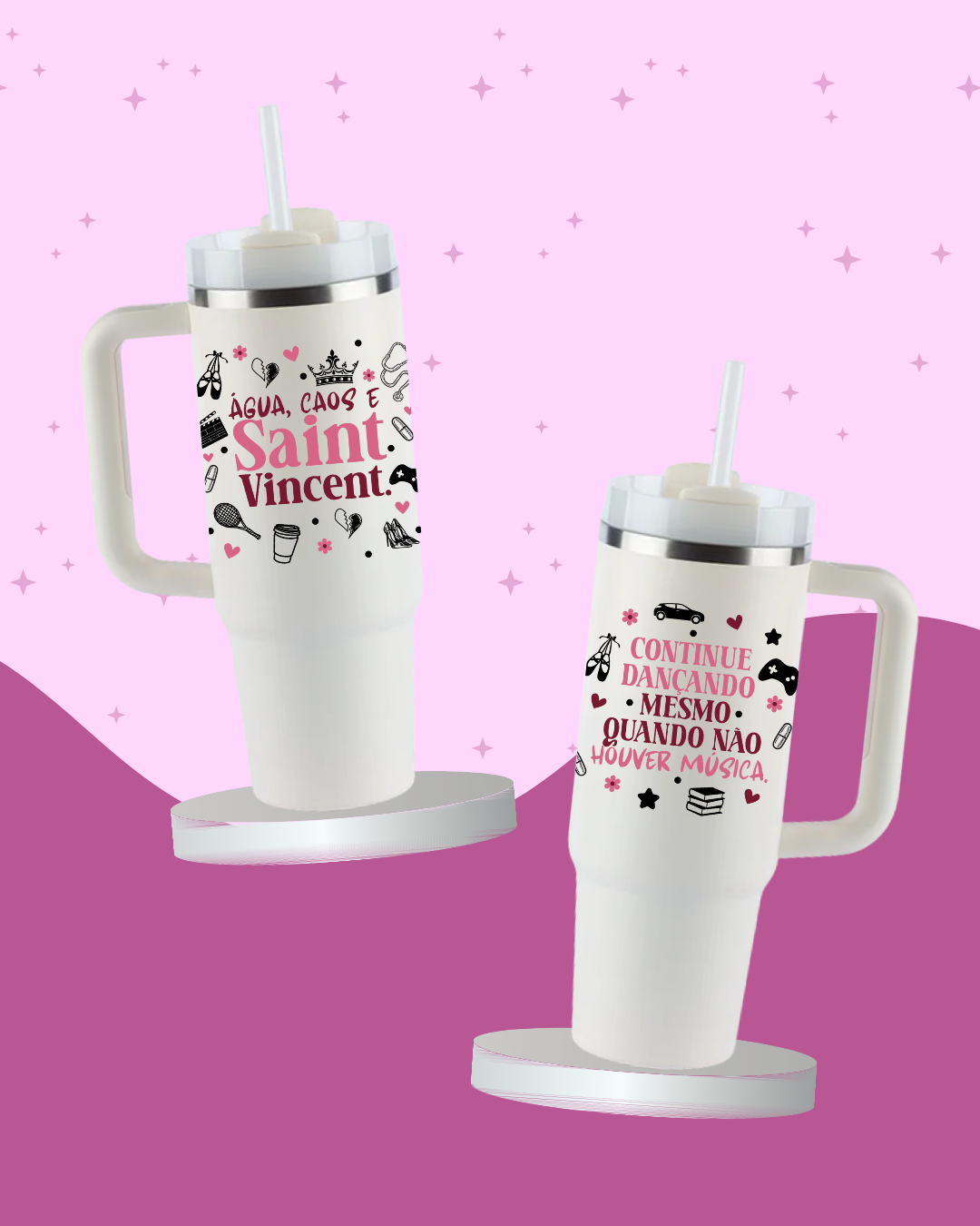 Ele acompanha canudo, que pode ser de plástico ou inox, variando conforme o estoque (a escolha do modelo não é disponível).